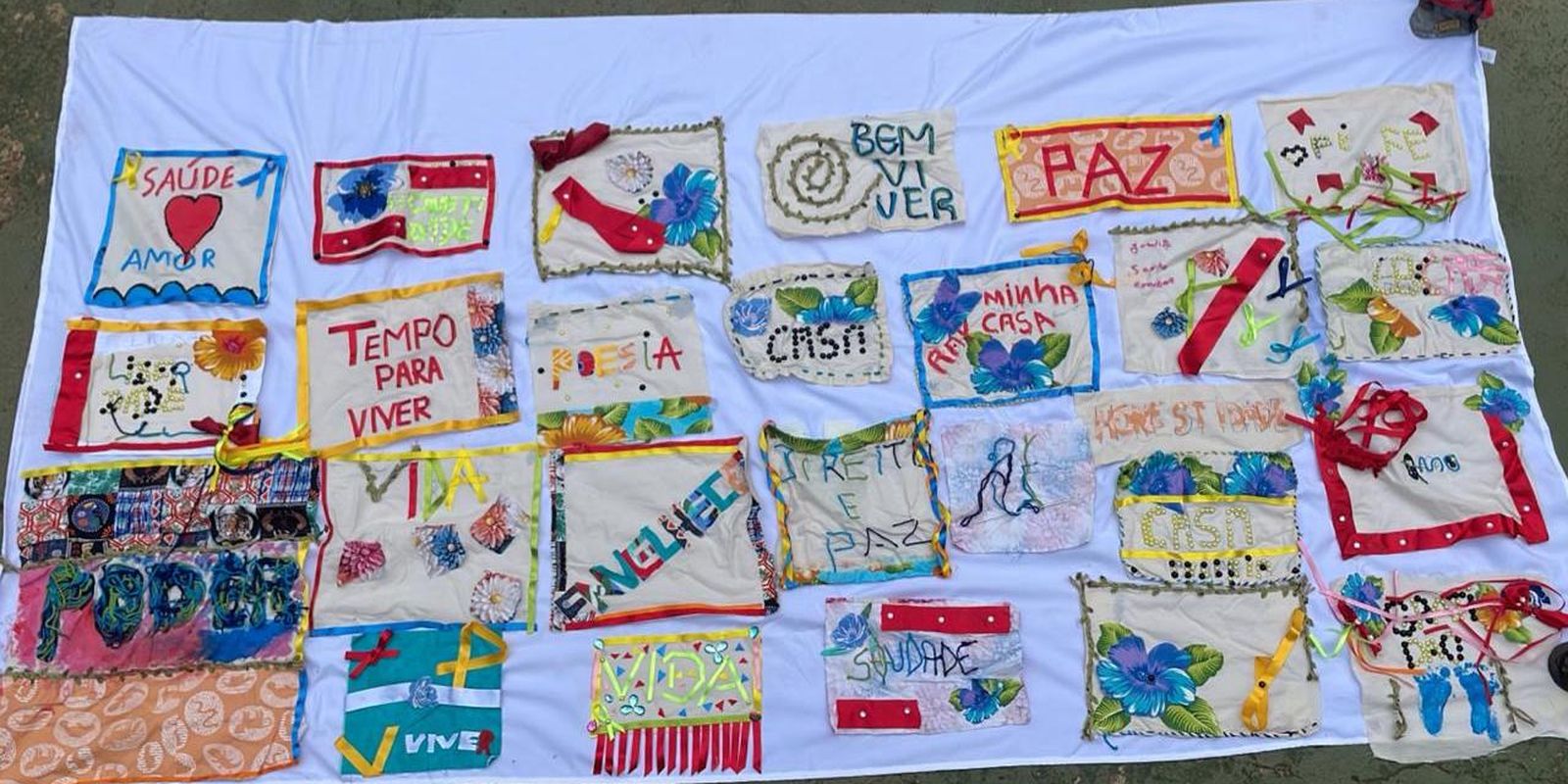 Nas mãos, elas vão levar um estandarte, feito de forma coletiva, e que carrega os anseios e sonhos dessas e de tantas outras mulheres negras que estarão em marcha por reparação e bem viver.