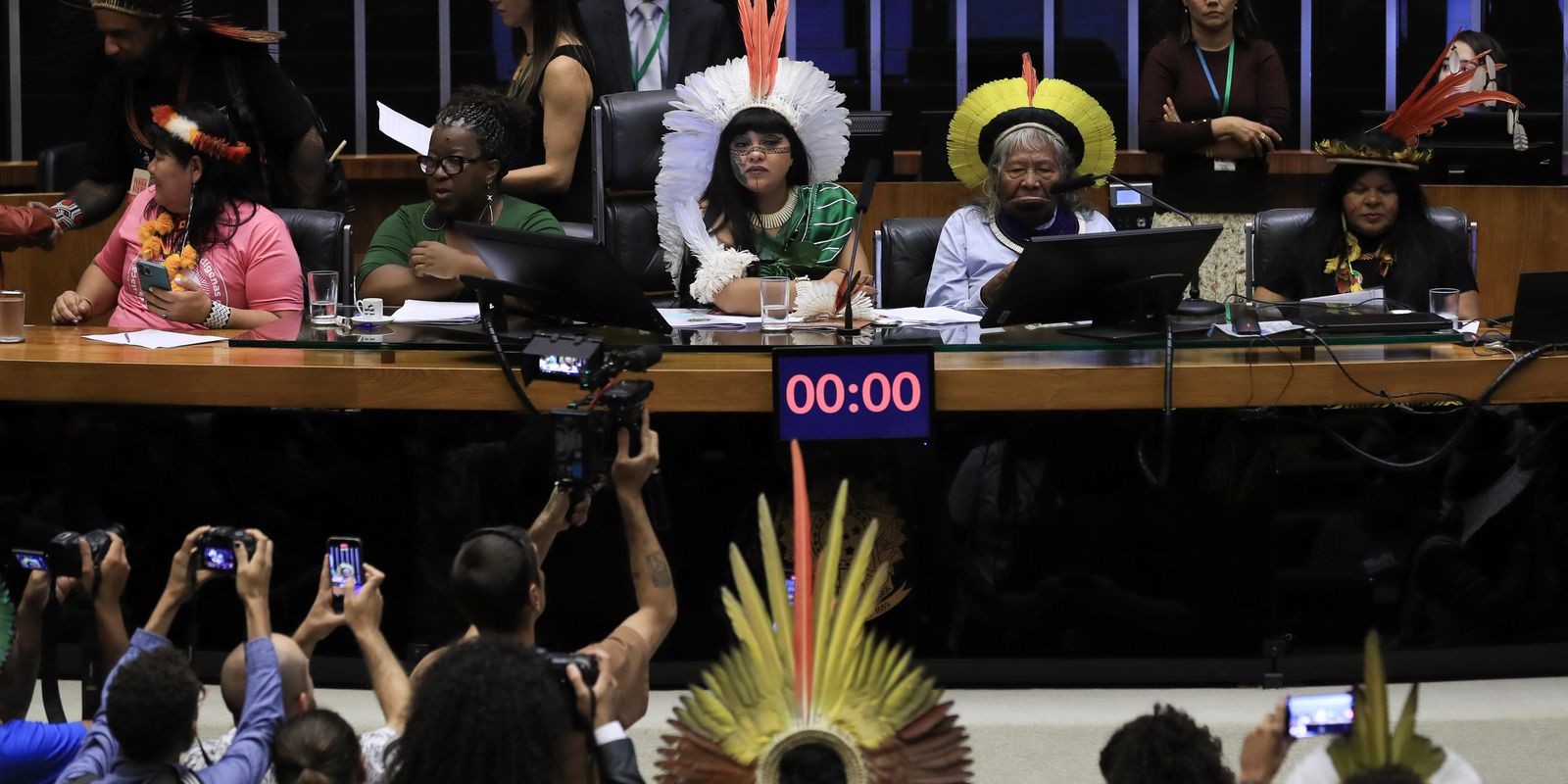 Durante a sessão da Câmara, um dos coordenadores executivos da Apib convidados a discursar, Dinamam Tuxá, criticou iniciativas parlamentares que afrontam os direitos indígenas. A seu ver, as proposições desfiguram o texto constitucional, com propostas como o chamado Marco Temporal – tese jurídica segundo a qual os indígenas só teriam direito às terras que ocupavam em outubro de 1988, quando a Constituição Federal foi promulgada.