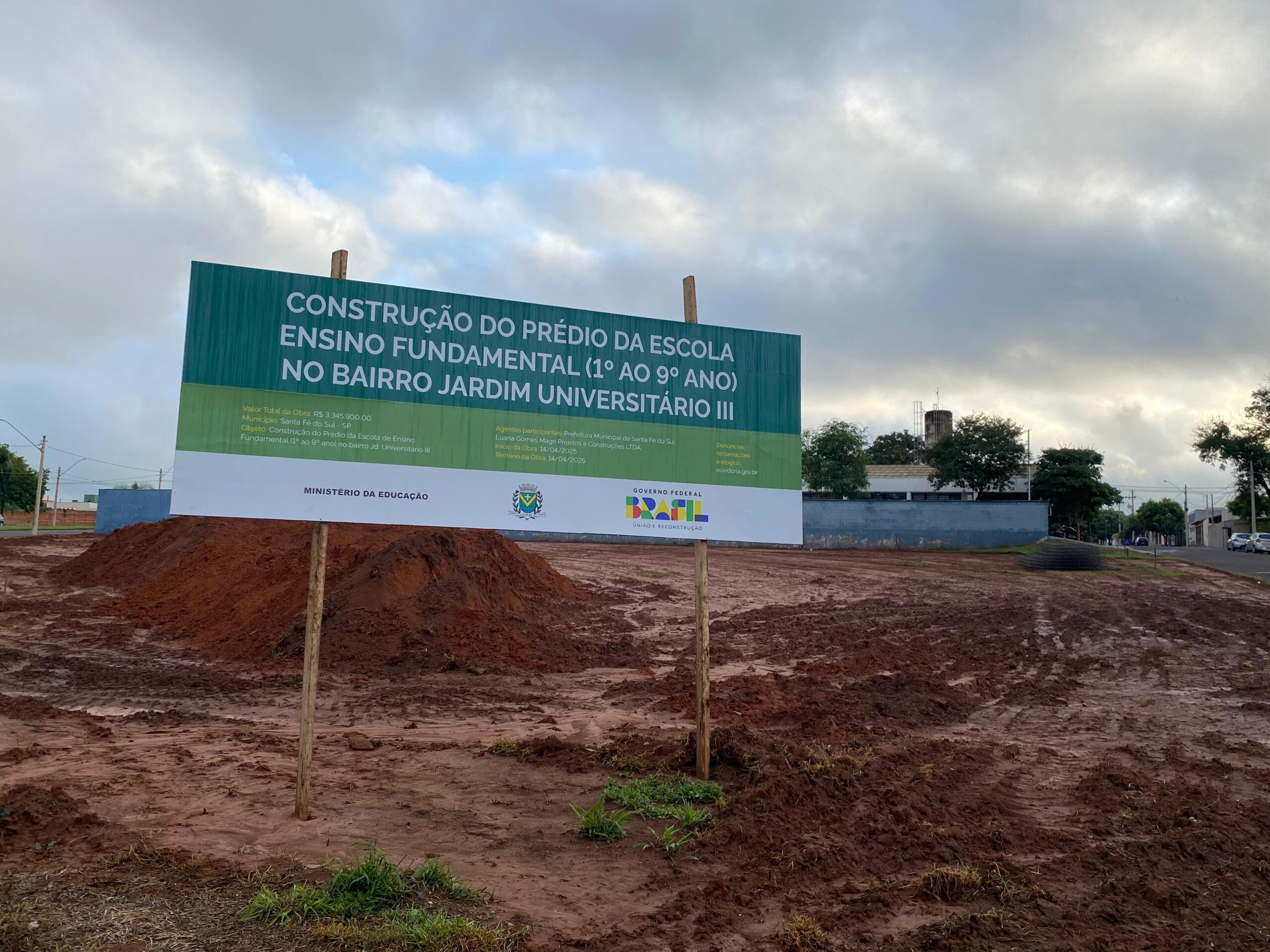A empresa vencedora da licitação iniciou nesta terça-feira, 29 de abril, as obras da nova escola no Bairro Universitário III. O novo espaço contará com 10 salas de aula, quadra coberta, amplo pátio, salas administrativas e atenderá alunos do 1º ao 9º ano do ensino fundamental, com capacidade para 540 estudantes.