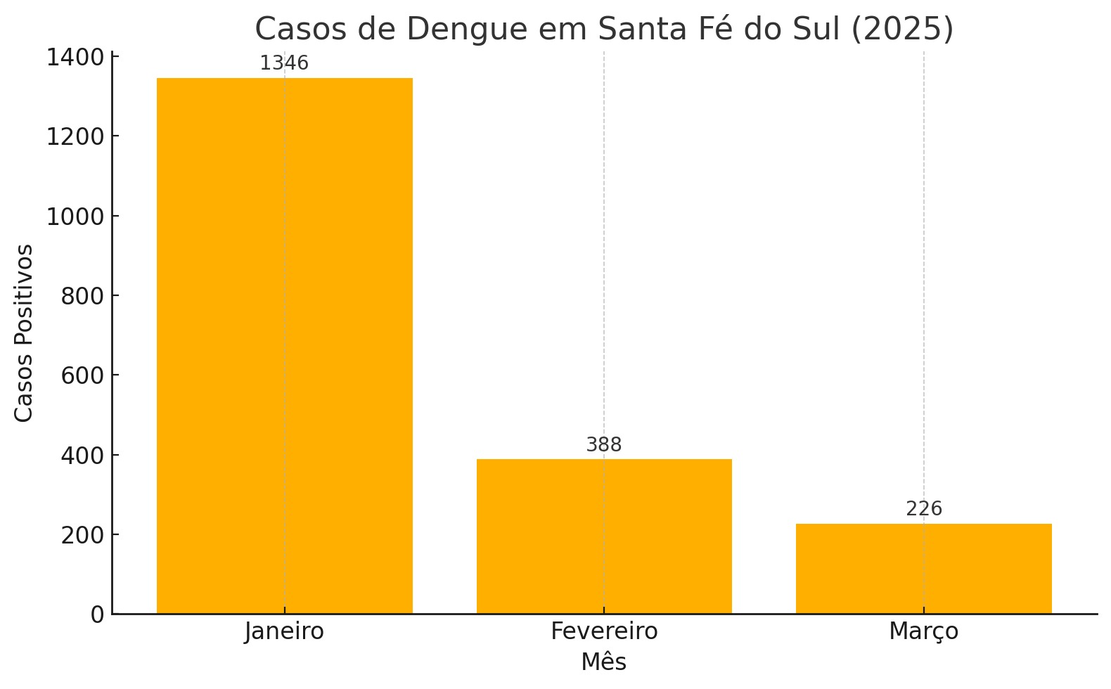 De janeiro a março, os resultados foram impressionantes: em janeiro, Santa Fé do Sul registrou 1.346 casos positivos de dengue. Em fevereiro, houve uma queda para 388 casos, e, em março, o número caiu ainda mais, para 226 casos — uma redução de 83% em relação ao primeiro mês do ano.