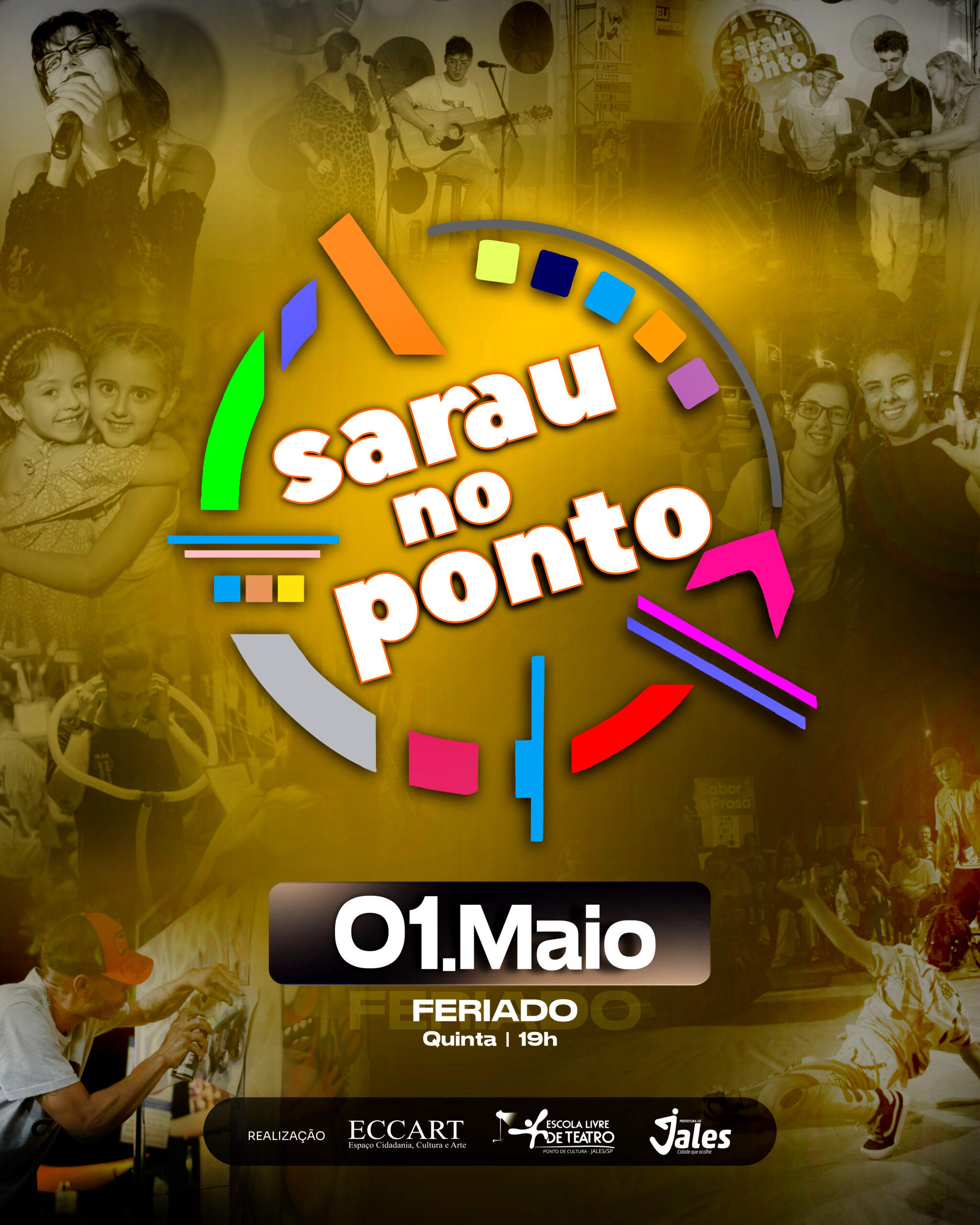 No feriado de 1º de maio, o Ponto de Cultura Escola Livre de Teatro será palco de uma programação cultural diversa e gratuita com a realização do Sarau no Ponto. O evento, que promete reunir arte, música, gastronomia e encontros criativos, terá como destaque o show da cantora Luana Granai, ex-participante do The Voice Brasil, que sobe ao palco com sua voz marcante.